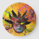 BLACK AND RED JESTER MASK Masquerade Party Yellow Large Clock