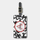 Black and Red Monogrammed Damask Print Luggage Tag