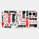 This design features a word cloud of red and black multilingual "Thank You" typography in a variety of font styles and sizes over a white background.