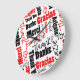 This 10.75 inch diameter clock is sporting a designed with red and black Thank You written in several languages and a variety of font styles over white. The design is set on a slight diagonal. Click Customize it! to select a background colour other than white when you go to Edit then Background.