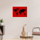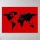 black and red world map poster