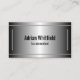 Silver Framed Bars Border © Sunny Mars Designs. This silver metallic horizontal accounting business card template features a silver and black gradient metallic background bordered by four silver and black bars. Personalize it by adding your own name and business details on the template on this product page or change it further by clicking the 'customize it' button.