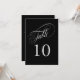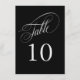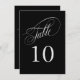 An elegant table number card in black with silver text featuring beautiful calligraphy script text. This design in the 4 1/2-inch by 6 1/2-inch size is a wonderful choice for weddings, banquets, dinners, luncheons, and parties that use black and silver in the colour scheme. To create table numbers for each table, personalize a single card for Table 1 and add to cart, then personalize a table card for Table 2 and add to cart, and so on until you have a card for each table.
