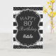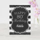 Black and Silver Glitter confetti 80th Birthday Card with personalized name. For further customization, please click the "Customize it" button and use our design tool to modify this template.