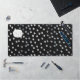 Modern and on-trend dots of faux silver glitter sparkle on this classic black desk pad that features a custom three-letter monogram and keeps your workspace feeling personalized and glamourous.