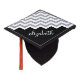 Black and Silver Glitter Print Chevrons and Name Graduation Cap Topper