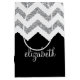 Black and Silver Glitter Print Chevrons and Name Medium Gift Bag