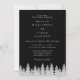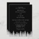 Capture the sleek elegance of a winter wedding with this black and silver invitation, perfect for a seasonal celebration. Featuring a rich black background and silver pine tree silhouettes, this invitation embodies modern sophistication for a winter wedding. Ideal for couples seeking a chic, contemporary aesthetic, it blends woodland charm with refined script typography for a polished touch. Whether you’re planning a glamourous winter soirée, a modern barn celebration, or a stylish forest-inspired event, this invitation beautifully sets the stage for a memorable winter wedding. This custom modern wedding design can easily be personalized with your own wedding details.