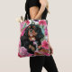 Black and tan Cavalier tote bag | pink floral