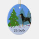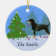 Black and Tan Coonhound Decorating Christmas Tree Ceramic Ornament