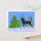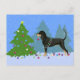 Black and Tan Coonhound Decorating Christmas Tree Holiday Postcard