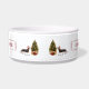 Such a cute black and tan dachshund! It is ready for Christmas as it stands next to the holiday tree. They are both decorated - the dog in a santa hat and tie and the tree filled with ornaments! Perfect pet gift to send at Christmas.