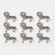 Destei's original cartoon illustration of a cute smooth hair black and tan dapple coat colour Dachshund breed dog. The dog design is placed nine times on each sheet. The background has a pattern of grey dog paw prints.