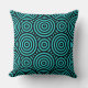 Black and Turquoise Nested Circular Pattern Throw Pillow