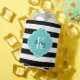 Black and Turquoise Preppy Stripes Monogram Can Cooler