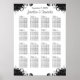 © Sunny Mars Designs - Floral Hibiscus: Black on White Wedding Seating Charts For Sixteen Tables - Trendy, stylish, modern, elegant, chic custom Gothic wedding table seating chart template with beautiful Goth black swirly floral tropical hibiscus design.