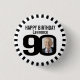 Black and white 90th birthday button pin badge with black and white stripes around the outside rim and your own photo in the 0 of 90. A great idea to add some personalized fun to a ninetieth birthday party. Personalize with your own photo in the 0 of 90 and name. Reads Happy Birthday 90. A button without the stripes is also available in my store. Graphics and design by Sarah Trett of www.mylittleeden.com