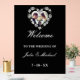 A stunning heart-shaped wreath of white roses frames your choice of a custom photo of the happy couple at the top. The word "Welcome" is displayed in an elegant script, followed by the phrase "TO THE WEDDING OF" and space for the couple's names, along with the date of the celebration: 7 - 18 - XX. This durable, high-quality acrylic sign makes a beautiful statement piece for your ceremony or reception entry.