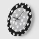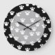 Black and White Animal Paw Print Pattern. Large Clock