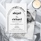 This timeless invitation for a black and white wedding couple's shower exudes elegance. With its arch design and striking typography, it captures attention effortlessly. The arch gracefully frames the text, and the phrase 'couple's shower' is beautifully curved at the top, following the arch's curve and extending to the right. The couple's names are prominently displayed in a bold font, adding a touch of sophistication. On the back of the invitation, a lovely photo of the couple takes centre stage, adding a personal and heartfelt touch to the overall design.