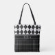 Black and White Argyle and Tartan Monogrammed Tote Bag