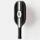 This pickleball paddle is decorated with a black and white Art Deco style monogram design
