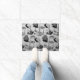 This Black and White Atomic Pattern Door Mat is black and white and retro all over. The design features a replica of a vintage 1950's fabric, as seen through the lens of a black and white television program. The modern art shapes include everything from the abstract to the fish! There are small fish swimming to the left, while blowing bubbles. There are larger black and white fish swimming to the right, while blowing grey bubbles. And there are dark grey jellyfish, who don't seem to be doing much of anything. This is the perfect design for anyone who loves fish, fabric, and items with a retro feel. This black and white design proves that you don't have to have colour to be colourful. It's a kitschy blast from the past!