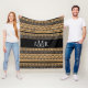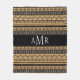 Black and White Aztec Tribal Patterned Monogram Fleece Blanket