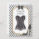 Elegant Black and White Polka Dot Bachelorette Party Invitation with Corset, High Heals, Bows, Gold Insert