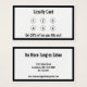 This black and white loyalty card template has display text you can edit. These white cards have a black border. All text can be edited or deleted.