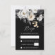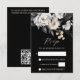Black and white boho peony flowers dry leaves pampas grass elegant wedding QR Rsvp enclosure card.
