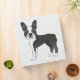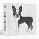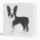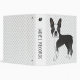 Destei's original cartoon illustration of a cute black and white coat colour Boston Terrier breed dog. There is a personalizable text area on the spine. The background has a pattern of grey dog paw prints. This cute binder makes a nice way to store your dog's veterinary records and other important papers.