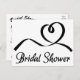 Love is in the air! These fun bridal shower invitation postcards features a large hand drawn swirly black heart highlighted against a crisp white background with bridal shower printed in a bold black script font.
