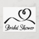 Love is in the air! These fun bridal shower invitation postcards features a large hand drawn swirly black heart highlighted against a crisp white background with bridal shower printed in a bold black script font.