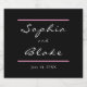 Set on a striking black background, the design features the couple’s first names in a playful script font, beautifully framed by clean, modern pink lines above and below for an eye-catching pop of colour. Your wedding date is elegantly displayed beneath, grounding the design in a sense of timeless romance. The bold contrast of white text and pink accents against the dark background perfectly complements your moonlit, mystical wedding theme.