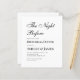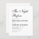 A simple, minimalist black and white rehearsal dinner invitation. It has just black text on white background. The title "The Night Before" is written in an elegant calligraphic script. The text is left aligned.