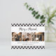 Custom buffalo plaid photo wedding announcement holiday postcards featuring a snowy black and white buffalo plaid background with 3 photos in the centre and a beautiful hand-lettered script title above. Easily personalize this buffalo plaid holiday postcard with your images, message, and your family name.