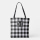 Black and White Buffalo Plaid Monogram Custom Tote Bag