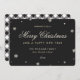 Black and white plaid holiday card featuring a black and white buffalo plaid background adorned with snowflakes and stars.