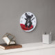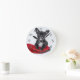 Black and White Bulldog Terrier on Red Pillow Round Clock