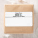 This template shipping label has four lines of black display text. The top line is bold, which you may want to use for your company name. The other lines also can be edited to show your organization's return address. The text is black. All text can be edited or deleted. A black, horizontal line is under the text to separate the return address from the delivery address.