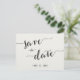 Black and white calligraphy Save the Date wedding postcards with customizable text