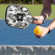 Black and White Camouflage Pattern Monogram Pickleball Paddle