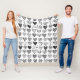 Black and White Cat and Heart Pattern Fleece Blanket