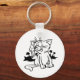 A cute cartoon style design of a black and white cat. This cat is sitting up and with his tongue out. The cat is mostly white and has a black background. This black and white cat design looks great on this keychain. Perfect for yourself or as a gift