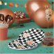 Black and White Checkered & Pink Rose Print Paper Plate
