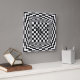The high-contrast design feels graphic and contemporary, while the square format enhances the geometric impact of the illusion. Clean black clock hands ensure clear readability without distracting from the pattern.