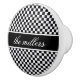 A chequerboard pattern in this classy design, is the background for a black and white band to hold your name, monogram or other text. Search ID148 to see other products with this design.
