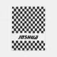Cool custom fleece blanket has a black and white chequered flag design on the front. Personalize it by changing the name to whatever you like. This would make a great gift for the race car enthusiast in your life. Please see our other custom chequered flag items.