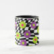 Whether you use mugs for coffee or ice cream, you'll love this super cute mug with artwork by Buttercup's Clothing and Collectables! Mug features and retro style pattern of abstract black and white checkers with lime green and bright purple flowers. Available with multiple mug options.